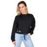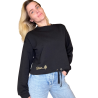 Стильный и современный черный джемпер для отдыха – отличный выбор для женщин, стремящихся сочетать комфорт и стиль. Эта короткая модель со шнурками внизу придает неповторимый и молодежный вид.